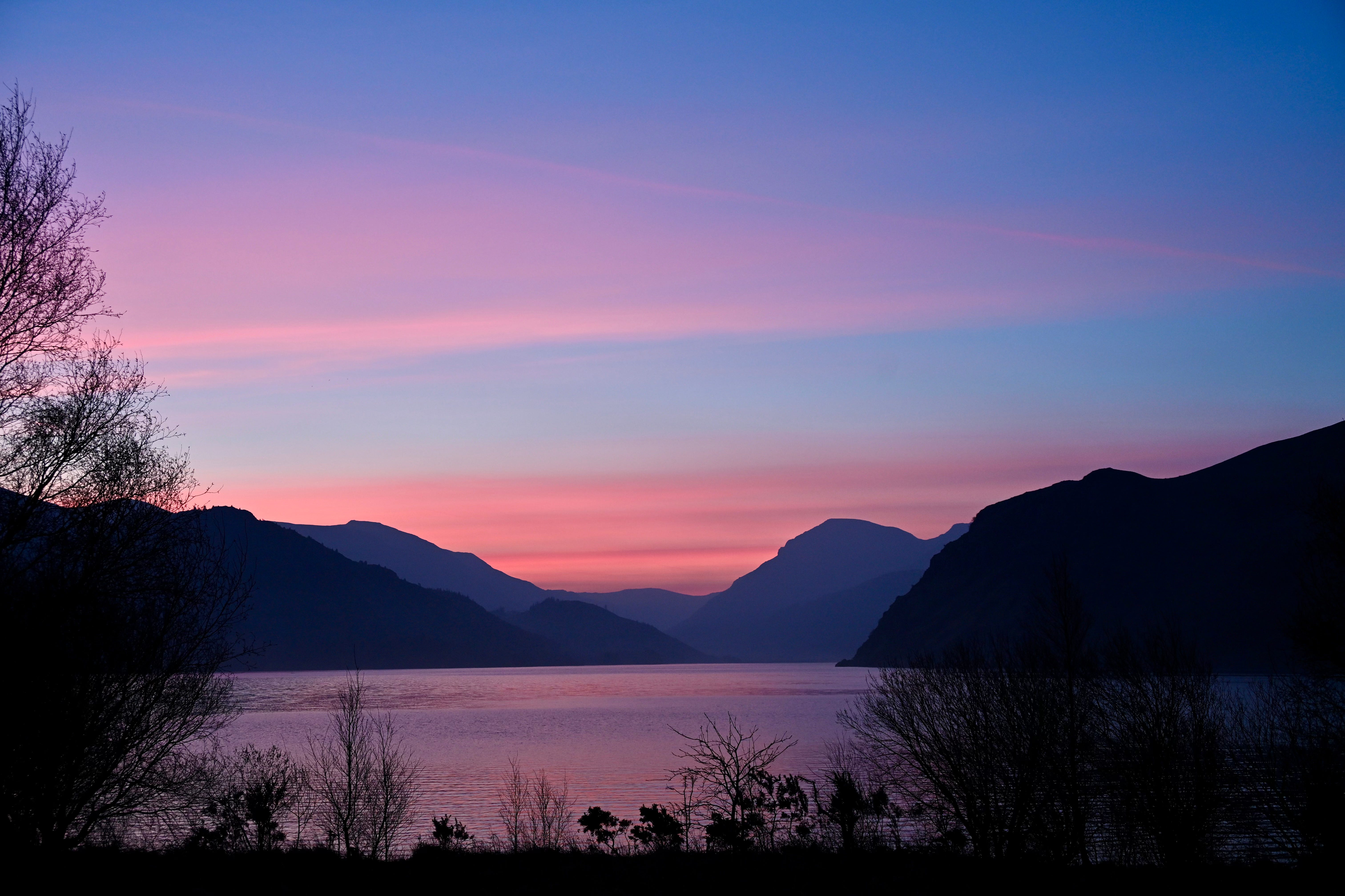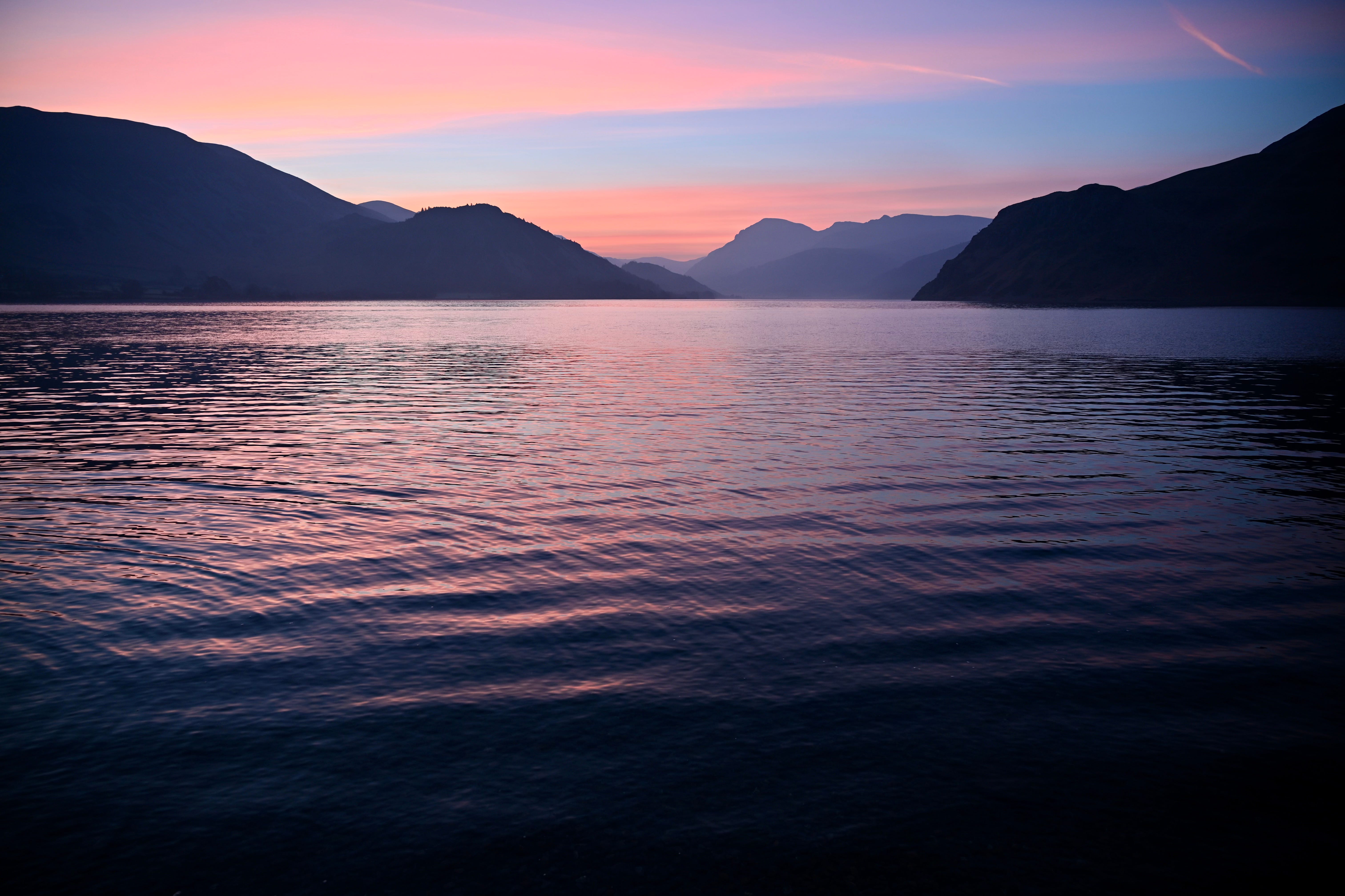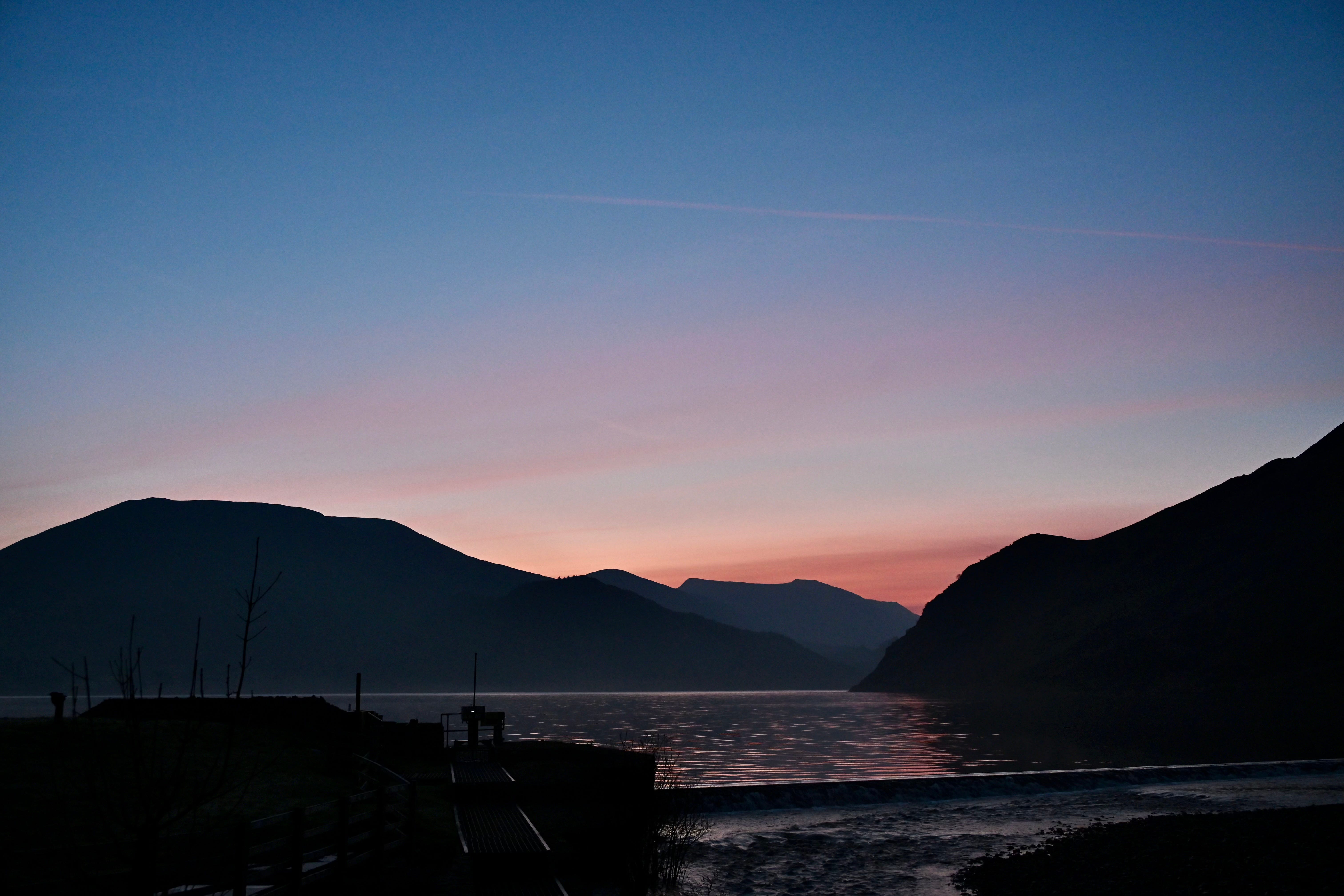 As I enter the valley, two things happen: the temperature falls – ending up at just 1°C, as I park – and the sky begins to lighten, despite it being twenty minutes until civil dawn, and nearly an hour still to sunrise. I put my fingerless gloves on, zip my gilet up, pull my woolly beanie over my ears, and tighten up the laces on my boots; wrap my hiking pack (a posh name for a large-capacity bum-bag) around my waist; hang my camera from my neck; grab my indispensable walking stick; and head for the lake (although it is formally named Ennerdale Water).3