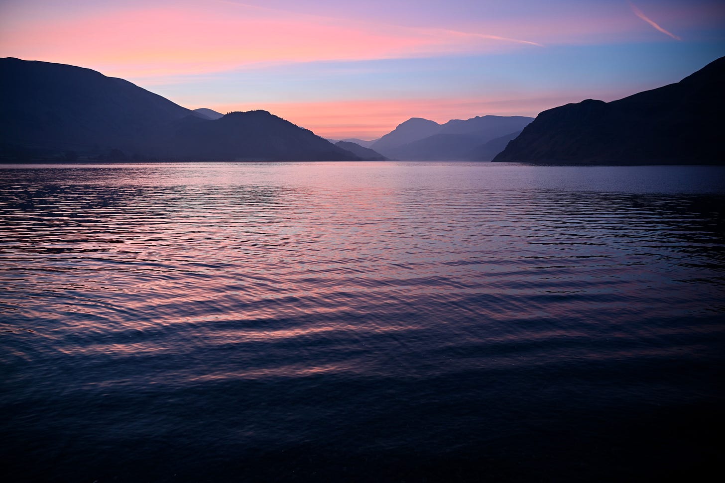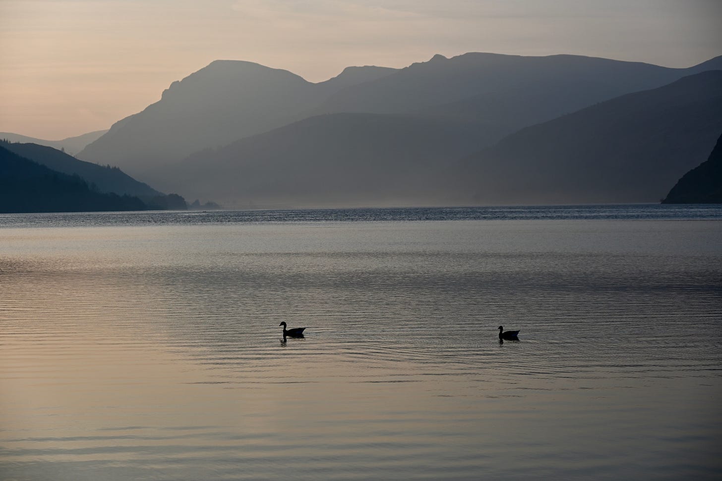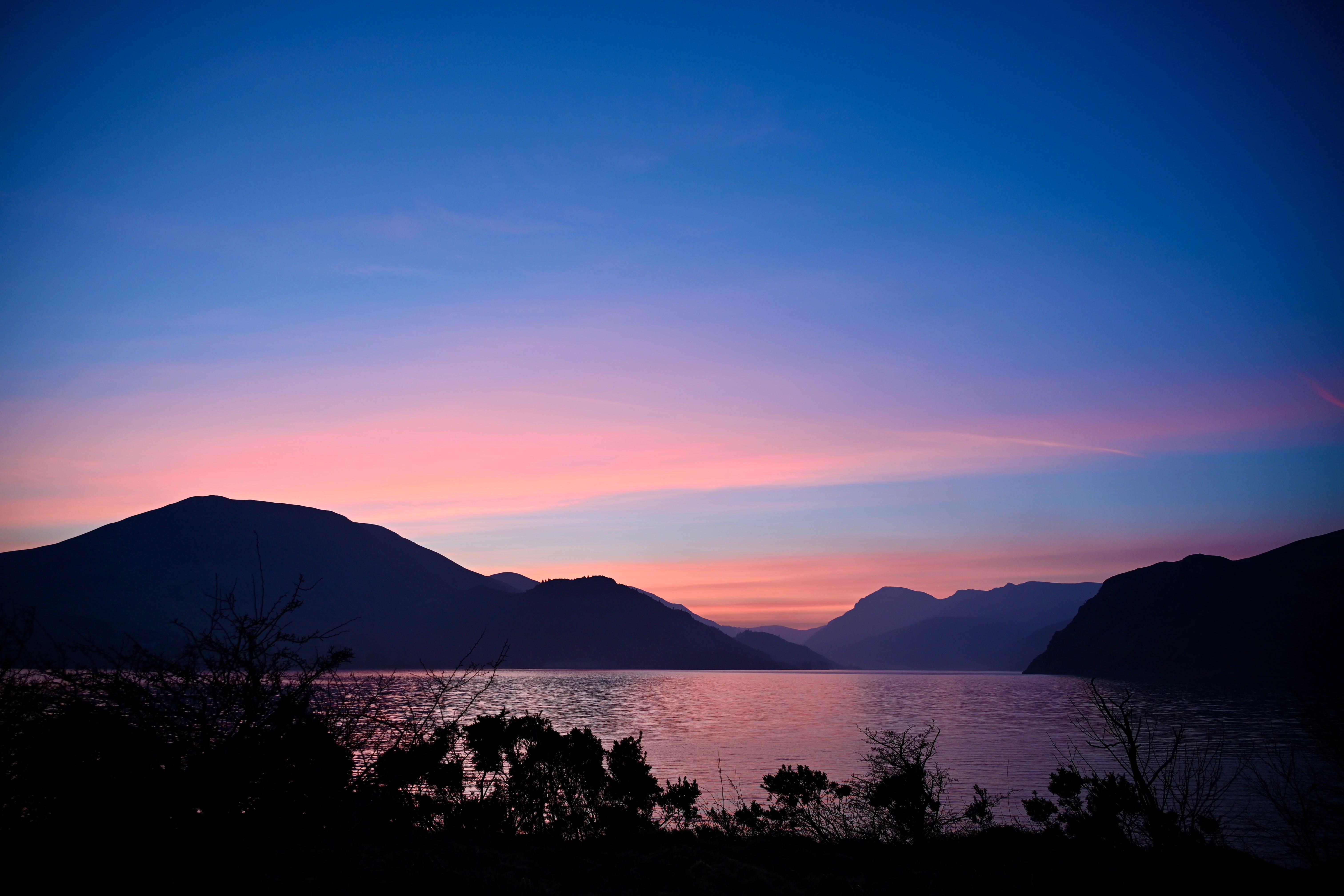 The sky isn’t just getting slowly brighter, but blushing, as well; and the show it is putting on lasts the whole hour or so until dawn. I am engrossed: and hunt for the most minute of changes with the lens. Once I am satisfied that I have captured every single facet of this morganite dawn, I take a break at the spot where the Angler’s Hotel was unnecessarily demolished in the year of my birth; and toast Henry and Winifred Oliver, its last owners, with a sip of water from my bottle (and, somewhat ironically, before that, from Thirlmere).